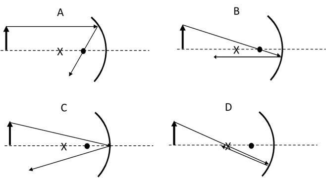- Rays passing through the focal point, or coming on a line coming through the focal point, on the same side as the object will emerge parallel to the optical axis